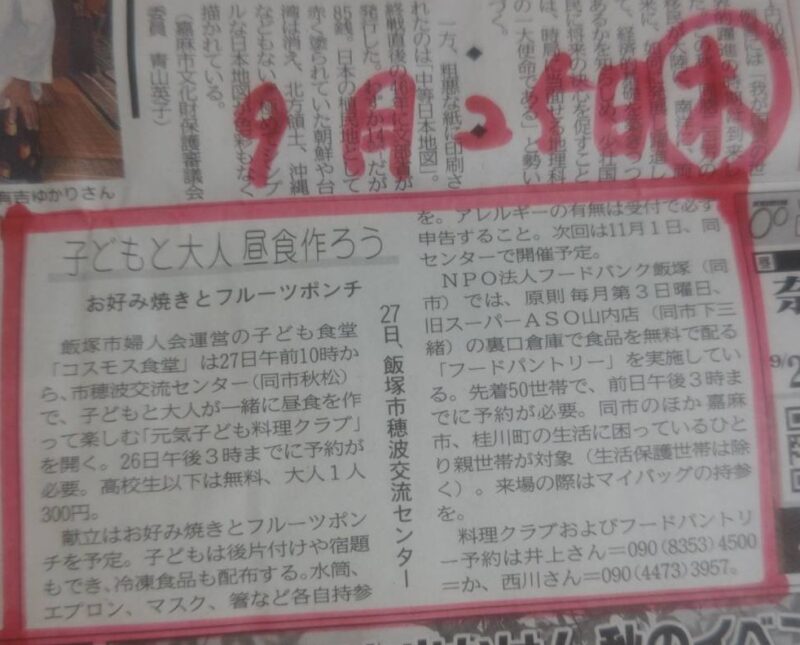 西日本新聞筑豊版にフードパントリーの記事が掲載されました。