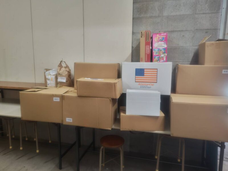 お米、インスタント食品、お菓子、ジュースなど寄付していただきました。