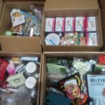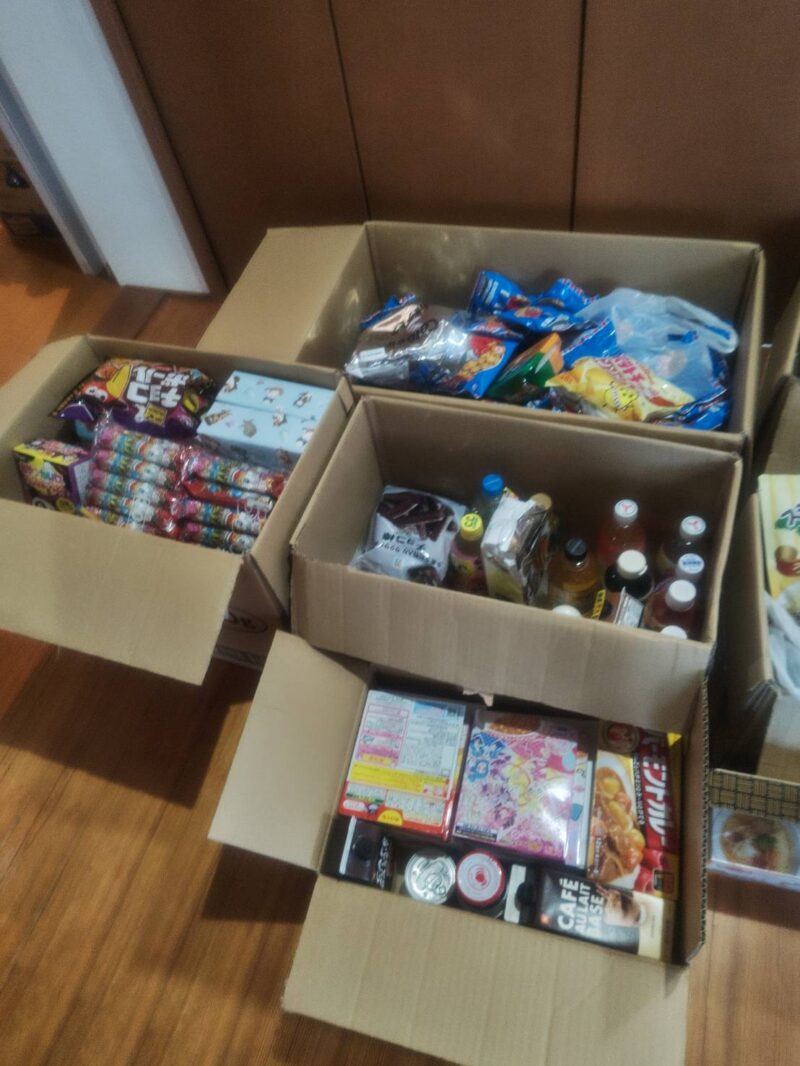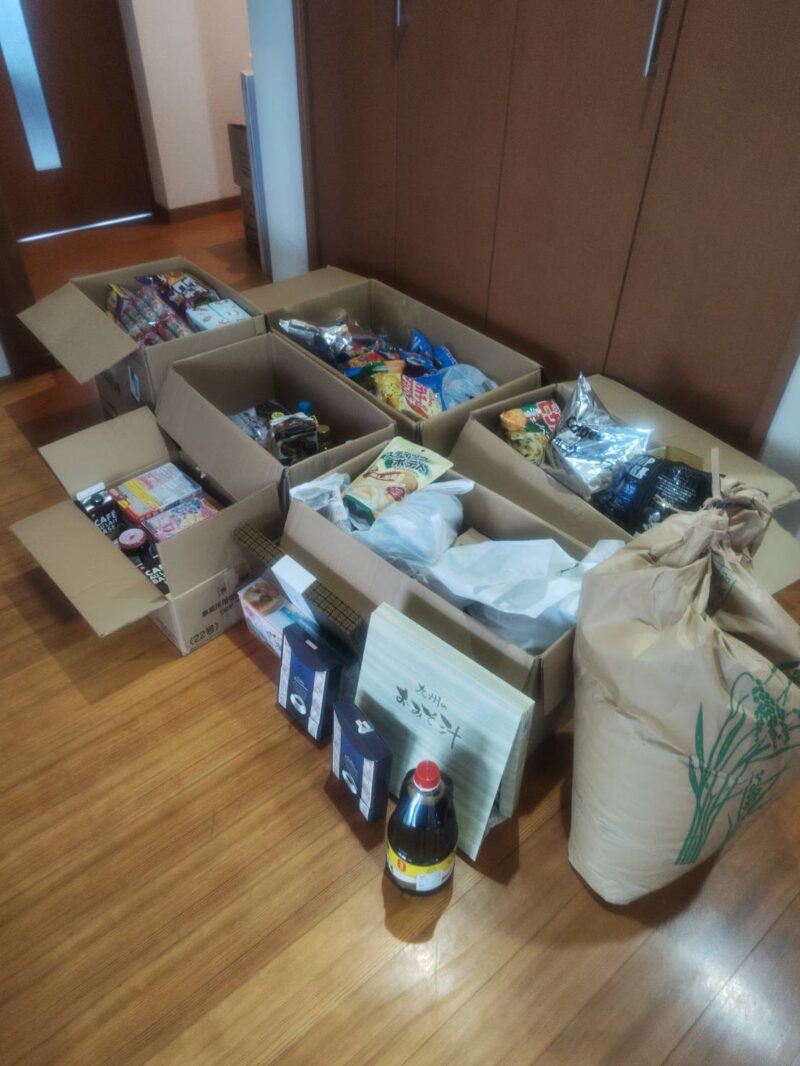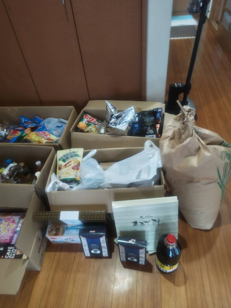 お米20キロ、お菓子、めん類、乾物類、ジュースなど